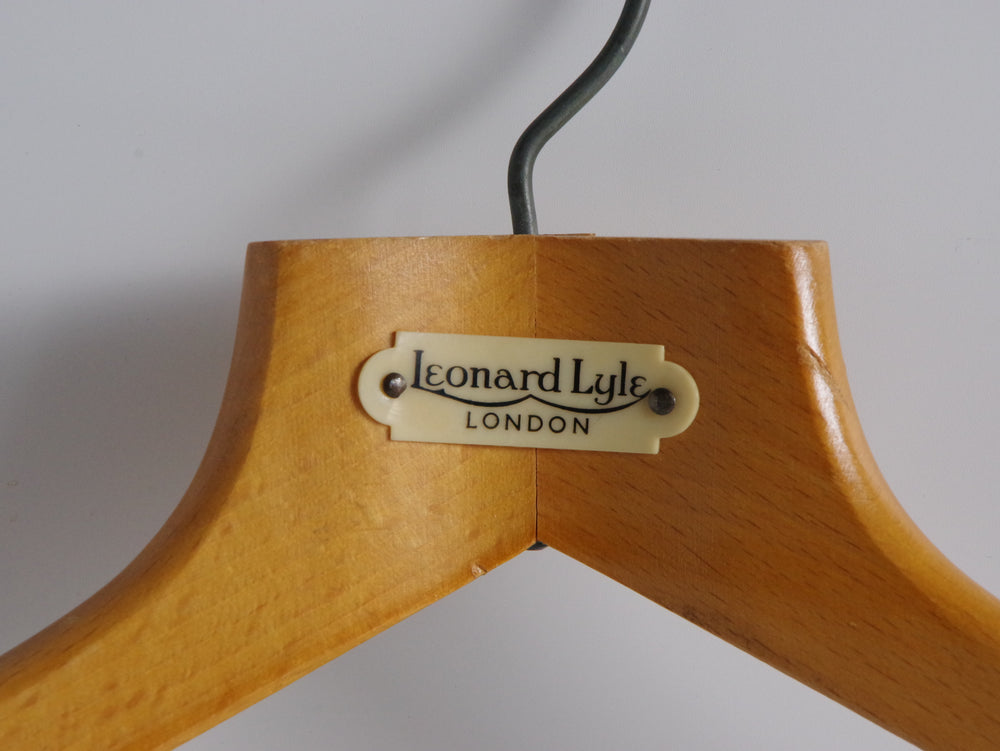 中央についた樹脂製のネームプレートには、テイラーの店名と住所、電話番号