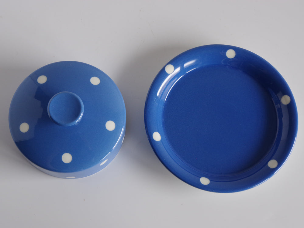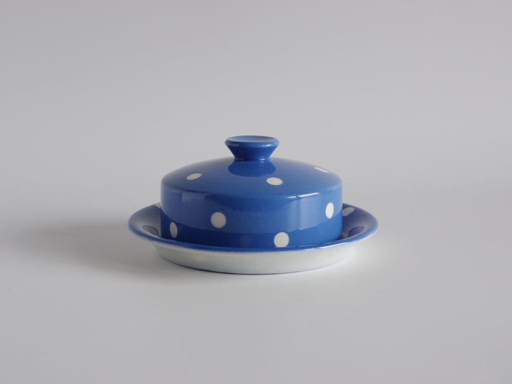 とてもきれいな青地に白い水玉がバランスよく配置されたデザインです。