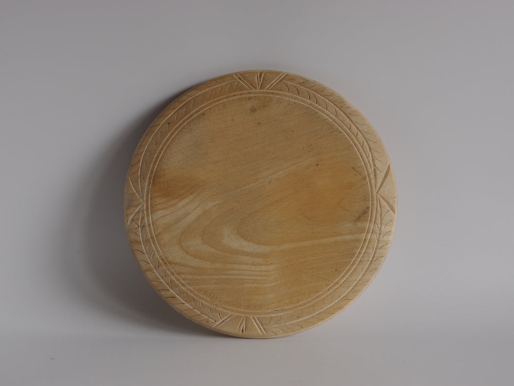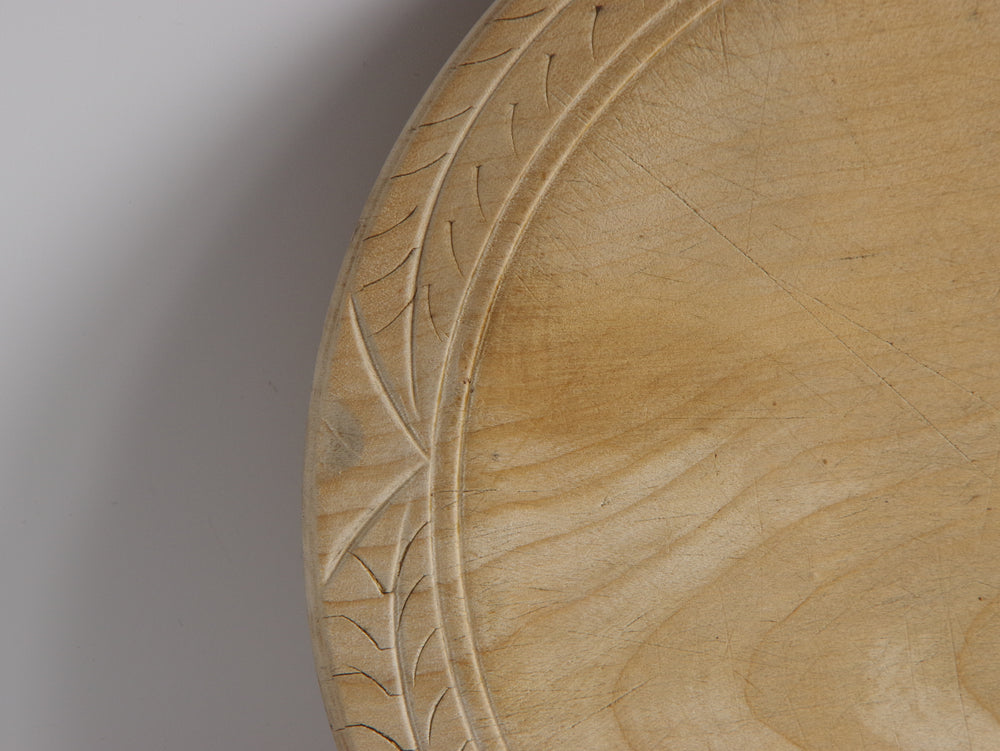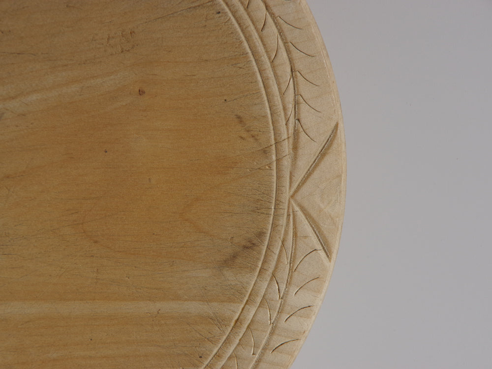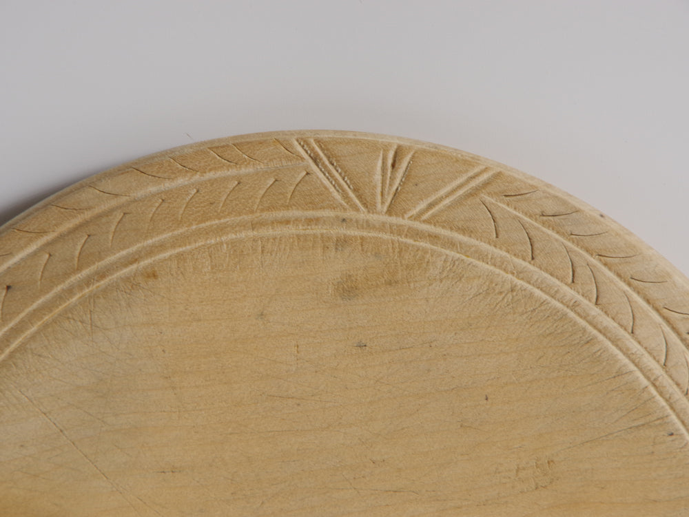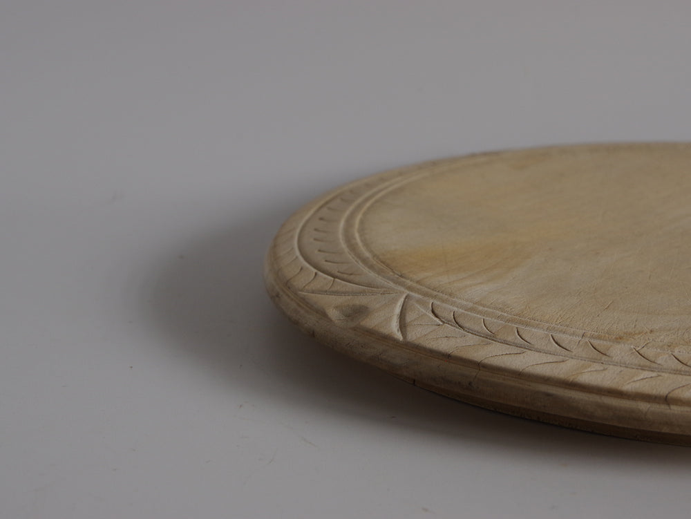 直径25cmとやや小さめで、縁のカービングは小麦の穂をシンプルに描いたようなものです。
