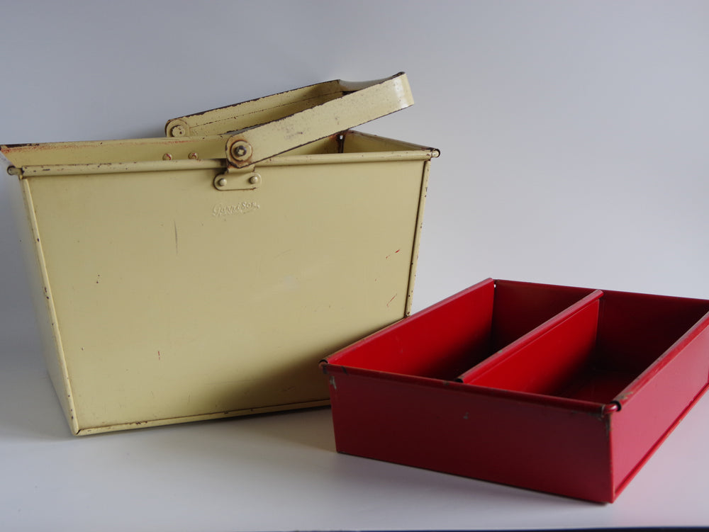 上部の赤いトレイは仕切りがあって小物を収納できます、